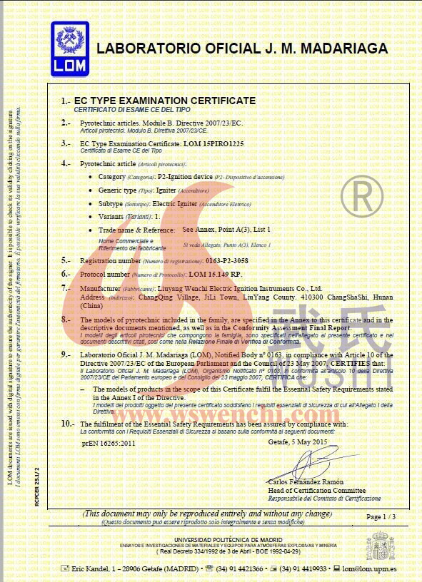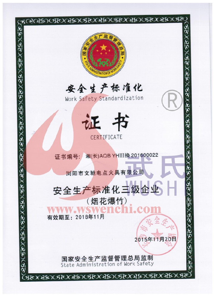 瀏陽市文馳電點火具有限公司(原培文電子點火器材廠),創(chuàng)建于1998年,是一家專業(yè)從事研制銷售電子點火產(chǎn)品的民營科技企業(yè),是我國第1枚煙花用電點火頭生產(chǎn)者,是《煙花爆竹電點火頭國標》牽頭起草單位。公司位于中國“煙花之鄉(xiāng)”湖南省瀏陽市,地理位置優(yōu)越,交通便利。 我公司研制的對象是用電能引燃火藥、做機械功等預(yù)定功能的一次性使用的元件或裝置,包括電點火頭(英文名ElectricMatch or Electric Igniter,中文俗稱“電火柴”或“電發(fā)火頭”)、電點火管和延期電點火管;我們估且在以后的產(chǎn)品技術(shù)欄中將我們研究的產(chǎn)品統(tǒng)稱為電點火具,將電點火器看成是用于提供和控制供給電點火元件點火的電能器材;我們研究的電點火橋路有橋絲式、無橋絲···